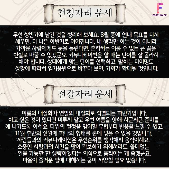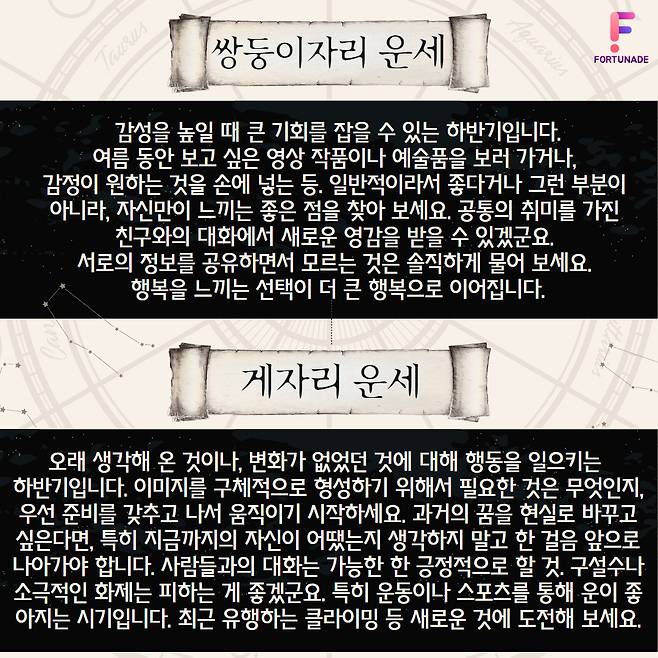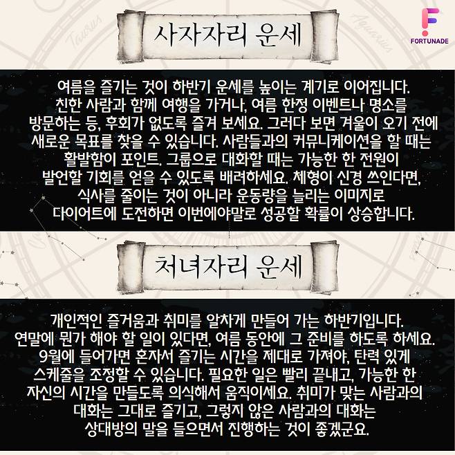 2025년의 두 번째 시작이라고 할 수 있는 하반기 운세에 대해, 포춘에이드만의 프리미엄 별자리 운세로 자세히 풀어 드립니다.