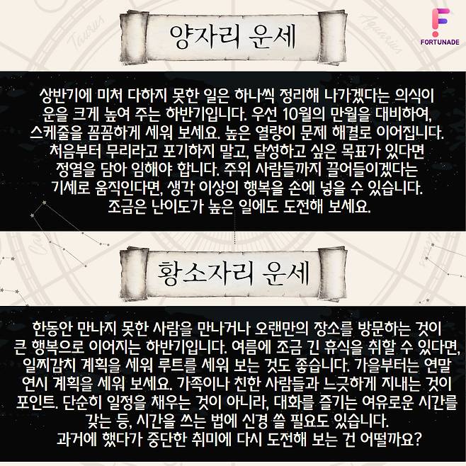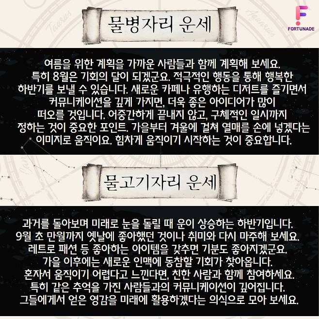 2025년의 두 번째 시작이라고 할 수 있는 하반기 운세에 대해, 포춘에이드만의 프리미엄 별자리 운세로 자세히 풀어 드립니다.