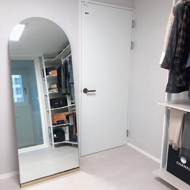 붙박이장과 오픈장 사이에는 큰 전신거울을 배치했어요.