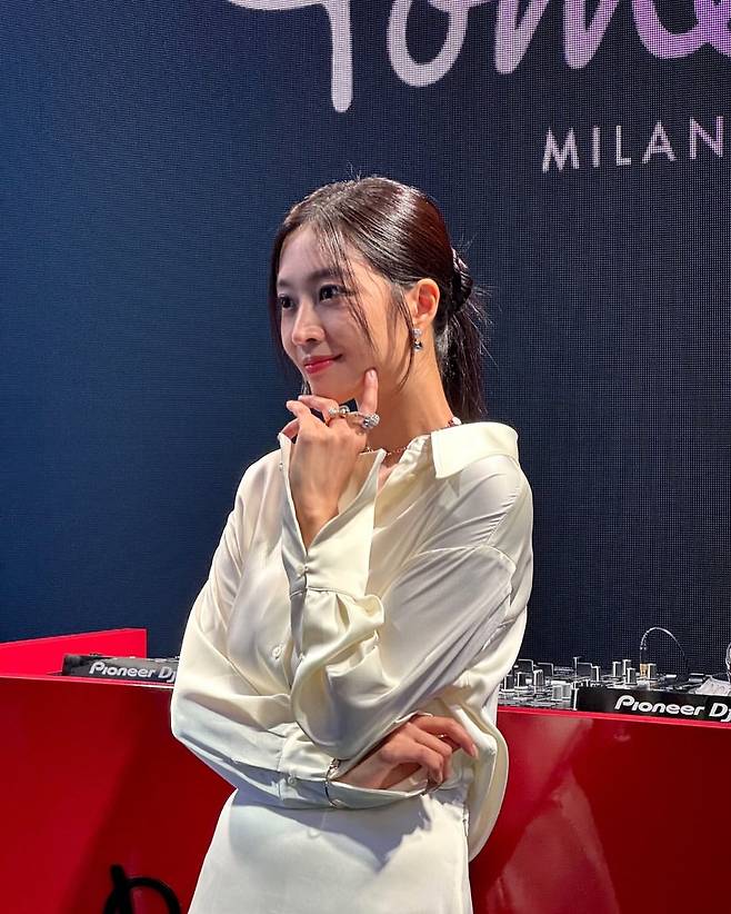 조보아는 화이트 오버사이즈 셔츠로 깔끔하면서도 모던한 분위기를 연출하고 있다. 넉넉한 실루엣의 셔츠를 자연스럽게 착용하여 편안함과 세련됨을 동시에 표현했으며, 뒤로 넘긴 헤어스타일과 함께 지적이고 세련된 이미지를 완성하고 있다.