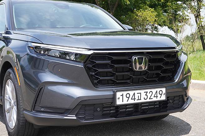 앞 얼굴에서 LED헤드렘프의 비중은 크다. 20세기에는 기능을 우선했다면 LED를 자유로이 사용하는 지금은 기능성과 예술성을 모두 추구하는 트렌드다. 오늘날은 좌우로 길게 뻗은 주간주행등과 그 아래의 헤드램프가 유행이다. 간결해 보이면서 엣지 있는 느낌을 준다. CR-V는 위쪽의 크롬 도금 라인과 램프 아래쪽의 라인을 채용해 모던한 느낌을 강조하고 있다. 위쪽의 코롬도금 라인을 앞쪽으로 돌출형으로 처리해 날카로운 이미지를 만들고 있다. 디테일로 성격을 표현한 것이다.