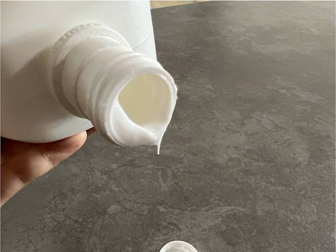 시간이 좀 지난 다음 뚜껑을 열어보니 안에 엄청 많은 로션이 남아 있었어요