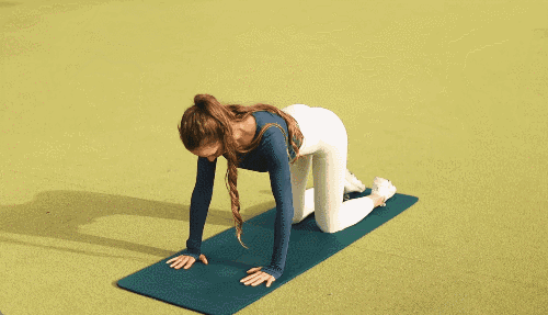 네발기기 자세로 엎드린 뒤, 오른팔을 앞으로 뻗으면서 동시에 왼발을 뒤로 뻗습니다. 몸이 흔들리지 않도록 중심을 잡고 잠시 버팁니다. 원래 자세로 돌아온 뒤, 이번에는 왼팔을 앞으로 뻗으며 오른발을 뒤로 뻗습니다.