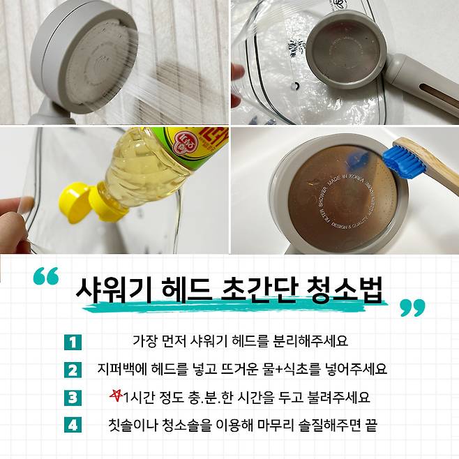 물론 샤워기 헤드의 경우, 사용한지 오래됐다면 곧바로 교체해주는 것도 방법이긴 해요.