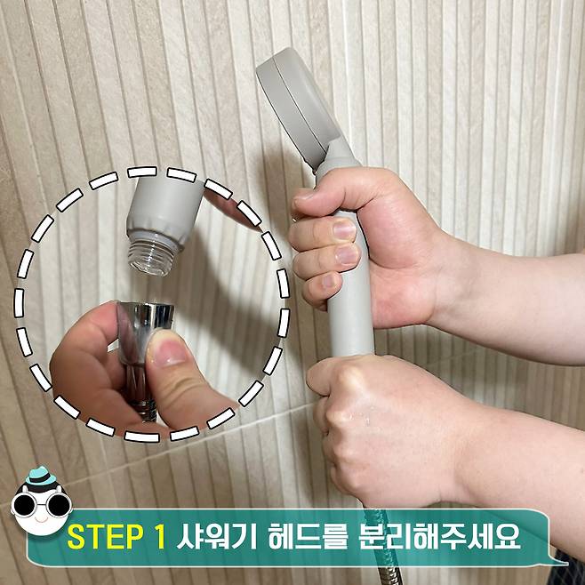 샤워기 헤드를 분리해주세요