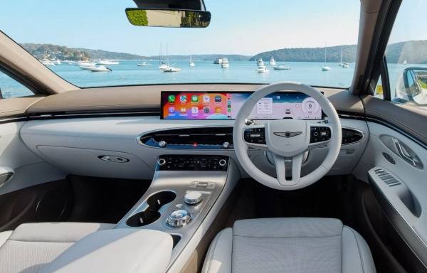 실내는 GV70의 진정한 백미를 보여준다. 기존 12.3인치 디지털 계기판과 14.5인치 인포테인먼트 디스플레이 대신 27인치 초대형 스크린이 자리 잡았다. 이 스크린은 선명하고 베젤이 얇아 고급스럽다. 다만 평평한 형태로 설계되어 일부 운전자에게는 다소 아쉬울 수 있다.