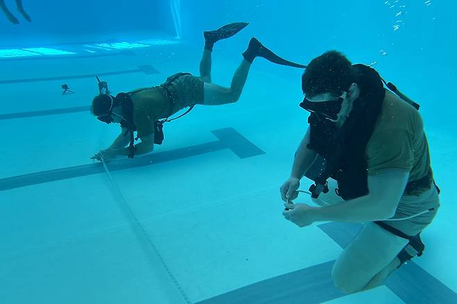훈련생들은 20~30m 수심에서 수십 분 동안 체온 저하와 공포를 이겨내야 하며, 이 과정에서 호흡 속도를 일정하게 유지하는 것이 생존의 열쇠입니다. 이 때문에 COMBAT DIVER 졸업생들은 ‘호흡을 지배하는 자’라는 별명을 얻습니다.