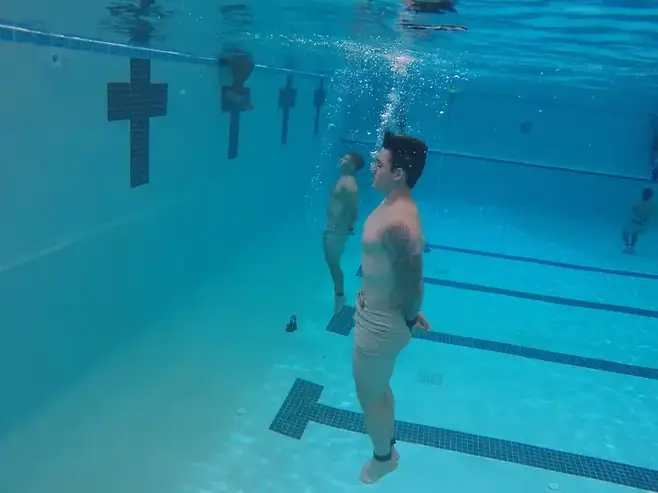 교관들은 수영장이나 해양 훈련장에서 훈련생의 마스크를 벗기고, 호흡기를 빼앗아버립니다. 훈련생은 당황하지 않고 장비를 되찾거나, 다른 방식으로 숨을 쉬며 침착하게 상황을 복구해야 합니다. 이 과정에서 공포심을 이기지 못하면 즉시 탈락입니다. 실제로 많은 지원자들이 이 단계에서 훈련을 포기합니다.
