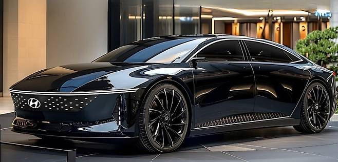 GN8 그랜저의 외관 디자인은 공개된 예상도를 통해 파격 그 자체임을 입증했습니다. EV9, 아이오닉 시리즈를 통해 확고히 자리 잡은 현대의 파라메트릭 픽셀 디자인과 수평형 DRL 라인이 전면에 과감하게 적용되며, 기존 ‘보수적인 그랜저’라는 이미지를 완전히 해체합니다.
