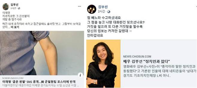 하지만 김부선은 윤 대통령이 불법계엄령을 선포한 후인 지난달 23일 “재명이가 대통령 되면 윤석열처럼 계엄령 때리겠냐. 누가 해도 윤석열, 김건희만큼 하겠어요?”라며 달라진 의견을 전했습니다.