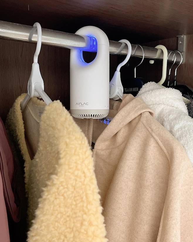 아니다! 나는 좀 더 확실하게 옷장 습기를 잡고 싶다! 하시는 분들께는 미니 의류 관리기를 추천해요. 마찬가지로 옷걸이와 함께 걸어 사용하기 때문에 전반적인 습도와 옷의 습기를 모두 잡을 수 있답니다.