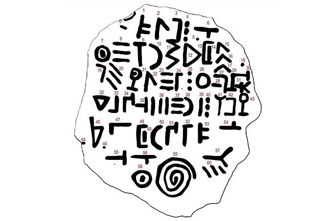 라마즈 교수는 "글자는 수평한 선 7줄을 따라 배치됐다"며 "일부는 몇 번 반복해서 나오기 때문에 숫자나 구두점일 가능성이 있다"고 말했다. 이어 "각 글자는 끝부분이 원추형인 도구로 새긴 듯하다"며 "상당히 매끄럽게 다듬어진 점은 당시 글자를 새기는 고도의 기술이 있었음을 알게 한다"고 덧붙였다.