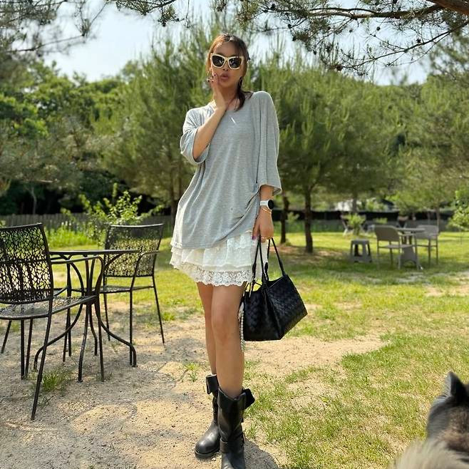 안무가 배윤정이 소녀미와 시크함을 넘나드는 반전 스타일링으로 감각적인 여름룩을 완성했습니다.