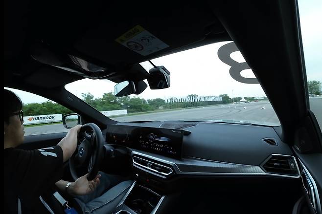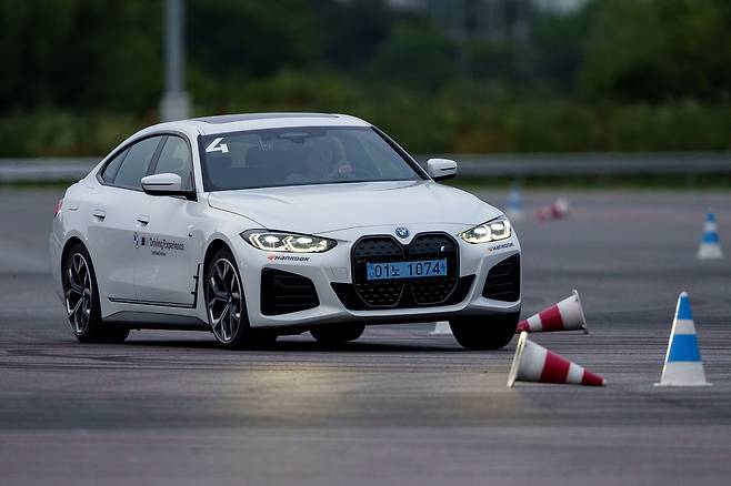 첫 순서는 짐카나다. 넓은 공터에 콘을 세워 만든 임시 코스를 빠르게 주파하는 종목이다. 참가자끼리의 기록 경쟁도 포인트였지만, 내연기관 모델 M4 컴페티션과 순수 전기차 i4 M50의 특성을 비교하는 시간이기도 했다. 최고출력은 각각 510마력과 544마력으로 i4 M50이 더 높다. 대신 M4가 약 500㎏ 가볍고 서스펜션이 탄탄해 승부를 쉽게 가늠할 수 없었다.