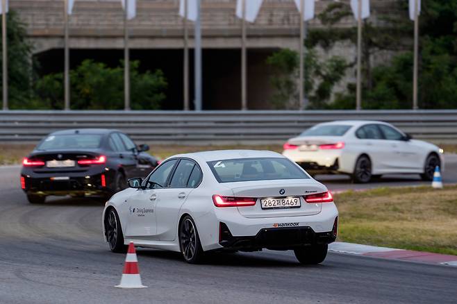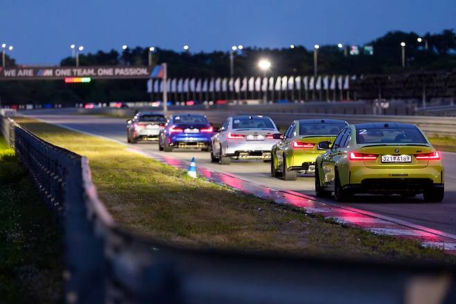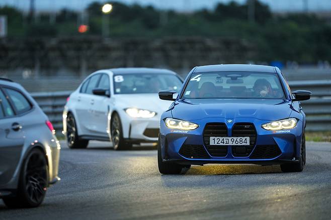먼저 M340i의 운전석에 올랐다. M 모델 중에서도 온순한 편이지만 나름대로의 감성이 있다. 가령 오른발을 떼었을 때 들리는 팝콘 소리는 M3보다도 호탕하다. 스티어링 휠 림도 남부럽지 않을 만큼 굵다. 4기통 3시리즈는 뭔가 부족하고, M3는 부담스러운 이들에게 딱이다. 인스트럭터의 무전과 앞 차의 불빛에 의지한 채 서킷에 진입했다.