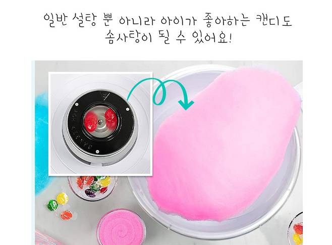 일반 설탕 뿐만 아니라 아이들이 평소 좋아하는 사탕으로도 솜사탕을 만들 수 있어 더욱 활용도가 높으며, 자일리톨 캔디나 무설탕 캔디를 사용하면 맛과 재미는 물론 건강까지 신경 쓴 솜사탕이 완성된다. 단, 설탕이 공기 중으로 날아가면서 주변이 다소 끈적해질 수 있기 때문에 비닐 등을 깔고 사용하거나 베란다 등 밖에서 사용하는 것이 더 좋다. 또한 솜사탕 만들기가 어렵지는 않지만 요령이 필요한 동작이므로 아이들과 함께 하기 전에 미리 연습해보는 것을 추천한다.