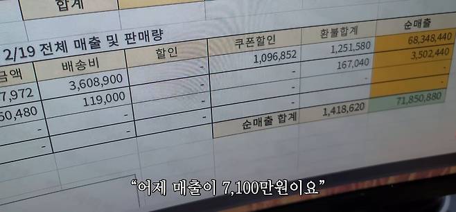 지금 마켓 회원수가 62만 명이에요. 핵이득마켓 이용자, 회원, 가입한 사람 수죠. 그러니까 제가 아무것도 안 해도 매출이 나오고 있는 거죠. 어제 매출이 7,100만 원 나왔네요. 투자가 높다고 좋은 게 아니라 안정적으로 처리할 수 있는 능력을 가져야 되는 거잖아요. 그게 제일 중요한 거거든요.