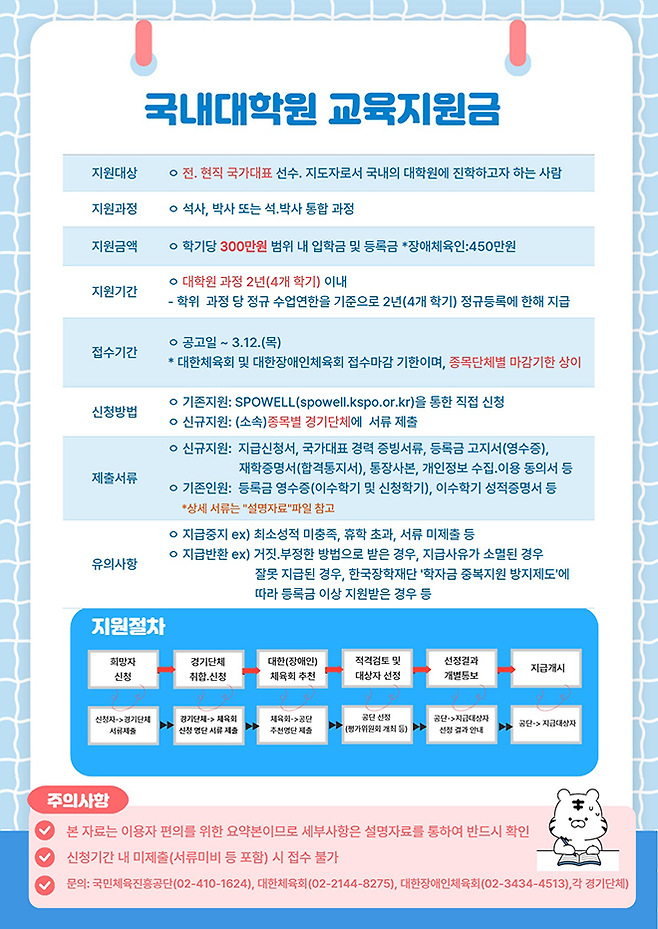 전현직 국가대표 선수 지도자 2026년 국내 대학원 교육 지원금 대상자 모집