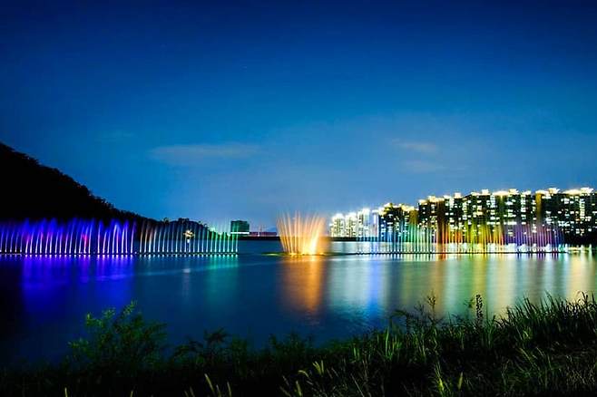 공원 내에는 동요 작가 박태준 흉상이 있고 공원 뒤로 청룡산과 삼필봉이 둘러싸여 있으며 밤이 되면 화려한 조명 분수쇼와 아파트 불이 켜져 아름다운 야경을 감상할 수 있습니다.