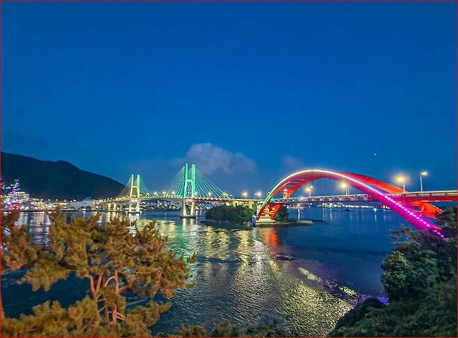 낮에는 에메랄드빛 바다와 어우러진 섬들이 한 폭의 그림처럼 펼쳐지고, 밤이 되면 다리 위를 밝히는 조명이 물결 위를 수놓으며 또 다른 매력을 자아냅니다. 이 아름다운 풍경 덕분에 삼천포대교는 ‘한국의 아름다운 길 100선’에도 이름을 올렸습니다.