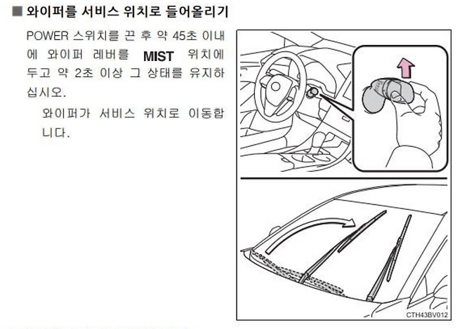 '시동 끄고, 와이퍼 레버 조작!'