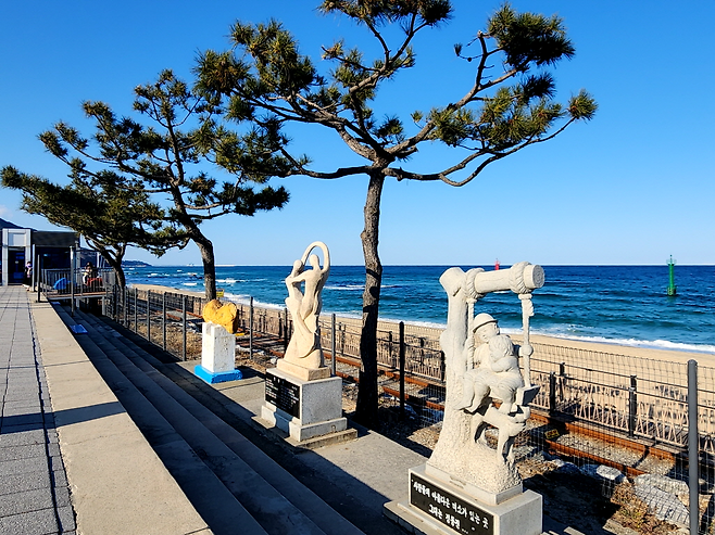 코스의 출발점은 정동진역입니다. 바다와 가장 가까운 역이라는 상징성만으로도 이곳은 늘 특별합니다. 겨울 아침, 역을 나서면 곧바로 펼쳐지는 동해의 수평선이 시선을 붙잡습니다. 그래서 많은 분들이 이곳을 ‘걷기 전 이미 절반은 감상한 풍경’이라 표현합니다.