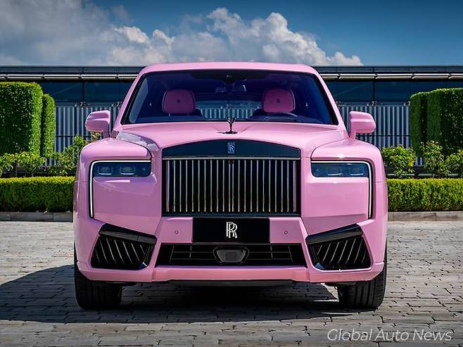 블랙 배지 컬리넌은 단첸 핑크(Danqian Pink) 외장을 적용하고 23인치 휠 중앙까지 동일 컬러를 사용했다. 측후면과 이중 코치라인에는 검정 실큰 스피릿 문양이 삽입됐다.