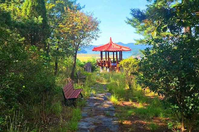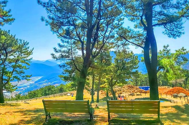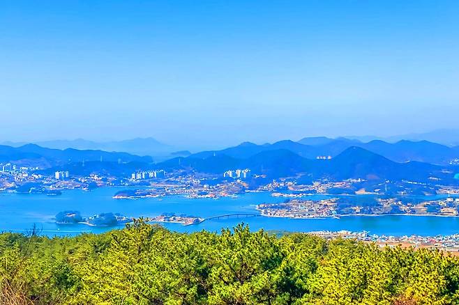 정상에서 바라보는 풍경은 거제 마을과 바다를 한눈에 조망할 수 있으며, 울창한 수목림과 어우러져 이국적인 풍취를 자아냅니다. 제주의 탁 트인 해안 전망을 보는 듯한 풍경은 특히 일몰 때 방문하면 환상적인 석양을 감상할 수 있습니다.
