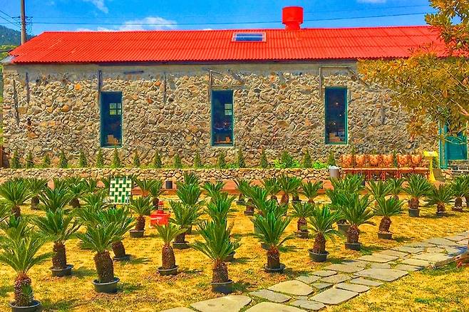 파인에이플러스는 거제에서 직접 재배되는 파인애플을 활용한 주스와 요리를 드실 수 있는 농가 레스토랑입니다. 오래도록 방치됐던 돌 창고를 레트로한 공간으로 활용해 제주 특유의 이국적인 감성을 살렸습니다.