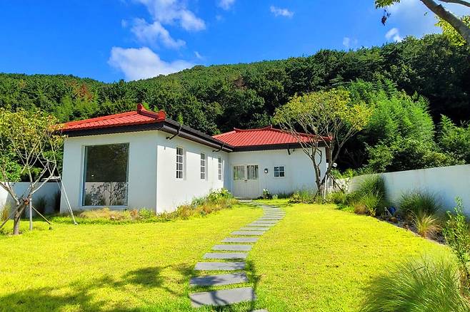 수나로이는 주변의 자연 경관과 제주 한옥이 어우러진 브런치 카페입니다. 현대적인 감성이 가미된 건물은 푸릇푸릇한 잔디가 깔린 마당과 울창한 나무와 숲이 어우러져 아기자기하면서, 자연 힐링을 동시에 즐길 수 있습니다.