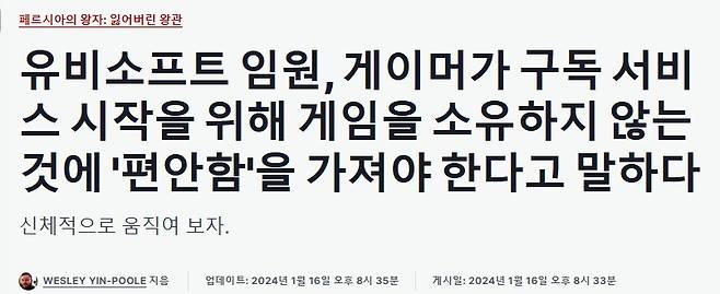 유비가 새로운 구독형 게임 패스 시스템인 유비소프트 +를 내놓은 이후 올해 초에 한 인터뷰에서