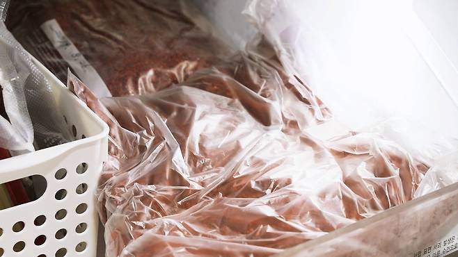 이제 이렇게 넣어둔 고춧가루를 냉동실 깊숙한 곳에 넣어 보관하면 된답니다.