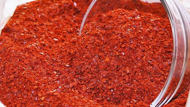 가장 먼저 준비해야 할 것은 방금 빻아온 신선한 고춧가루예요. 이 신선한 고춧가루를 잘 보관해야 1년 이상 맛있게 보관이 가능해요! 저는 직접 방앗간에서 매년 빻아온 후 사용하고 있답니다.