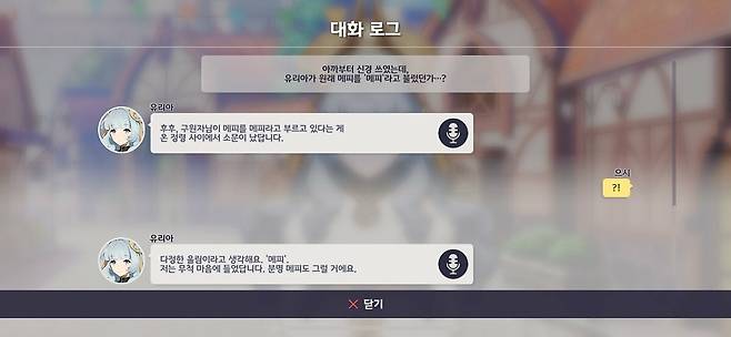 다음으로 이야기할 것은 메인 스토리와 인연 스토리 등 스토리에서 유저인 '구원자'와 정령의 대화를 표현하는 방식입니다. 정령들이 기원을 알기 위해서는 구원자의 힘이 반드시 필요하다는 설정인 만큼, 구원자가 정령들과 이야기하는 부분은 더욱 심혈을 기울여서 만들어야 했습니다.