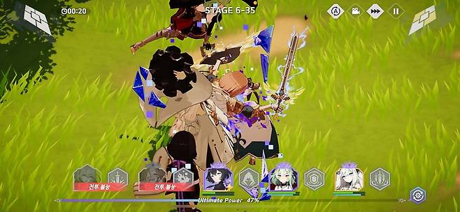 전투 자체는 자동으로 진행되지만, 캐릭터별 '메인 스킬'의 사용 타이밍과 전황에 따른 '얼티밋 스킬'의 선택 사용으로 전략성을 높였습니다. 타이밍이나 순서에 맞춰 사용해야 위력을 발휘하는 경우가 많았기에 정령이 가진 스킬 효과를 숙지해두는 것도 중요했죠.