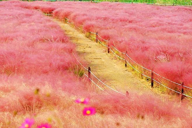 가을의 핑크빛 물결, 핑크뮬리는 국내 여행자들에게 가장 사랑받는 자연 명소 중 하나입니다.