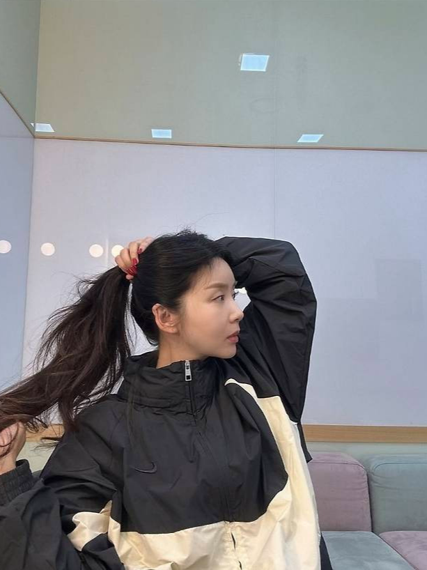 배우 박솔미가 블랙과 크림이 조화를 이루는 윈드브레이커에 높게 묶은 포니테일을 더해 생기 넘치는 스포티룩을 선보였습니다.