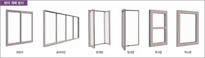 창의 개패 방식 창의 개폐 방식 역시 중요합니다. 특정 창의 경우, 창 크기는 클 수 있지만 열었을 때의 면적이 작아 통풍이나 환기 기능이 매우 미미할 수 있기 때문입니다. 여닫이창은 고정 면이 측면에 각각 달려 밖으로 여는 방식입니다.