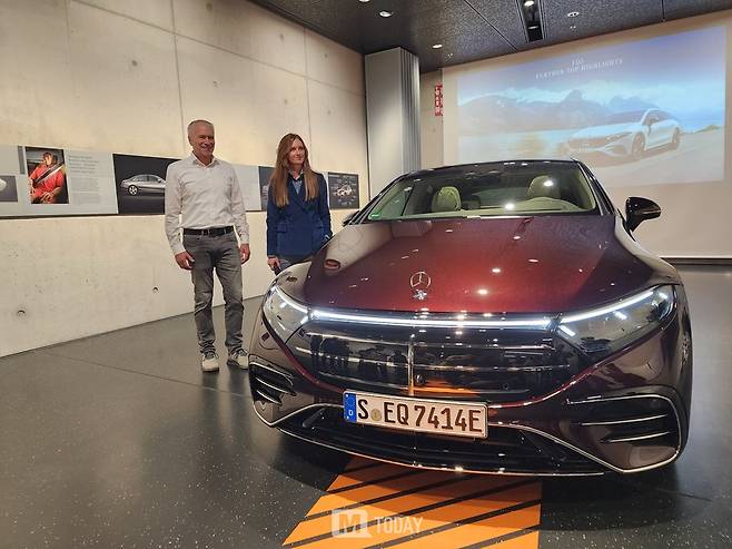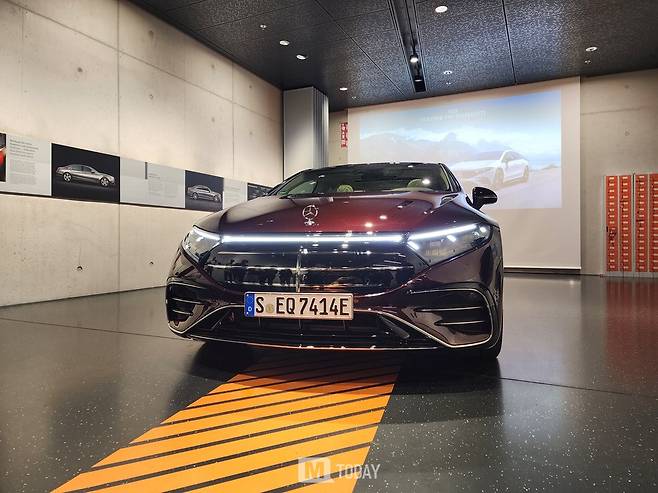 [독일 진델핑겐=M투데이 이정근 기자] 메르세데스-벤츠가 22일(현지시간) 독일 진델핑겐 소재 차량 안전 기술 센터(TFS)에서 플래그십 전기 세단 'EQS'의 연식변경 모델을 공개했다.