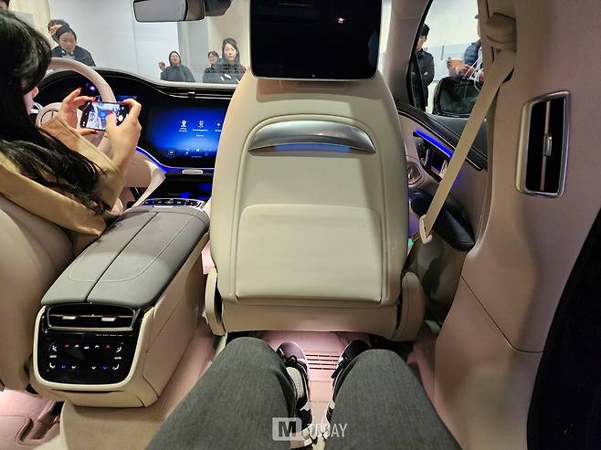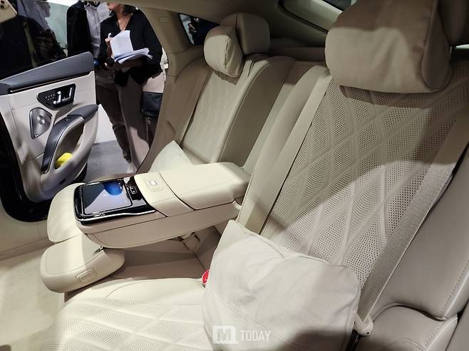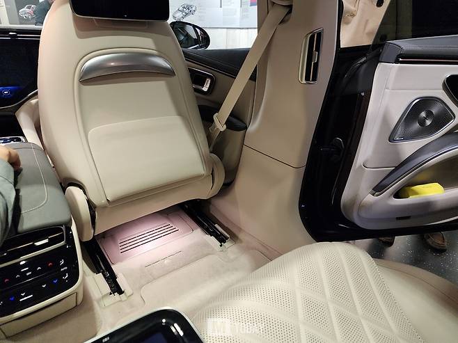 벤츠는 EQS의 뒷좌석 안락함을 여러 단계에 걸쳐 개선했다. 조수석을 앞으로 접고 뒷좌석 등받이를 최대 38도까지 조절할 수 있다. 기본으로 제공되는 뒷좌석 패키지는 버튼 하나로 등받이 각도를 27도에서 36도까지 조절할 수 있다. 5mm 두꺼워진 시트 폼과 측면에서 분리 가능한 커버로 편안한 착좌감을 제공한다.