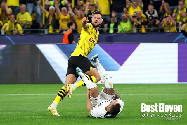 선제골은 도르트문트에서 나왔다. 전반 36분, 후방에서 패스가 한 번에 넘어왔다. 니클라스 퓔크루크가 날아오는 공을 봤다. 니클라스 퓔크루크는 첫 번째 터치에서 볼을 깔끔하게 잡아둔 뒤 두 번째 터치에서 슛을 날렸다. 잔루이지 돈나룸마 PSG 골키퍼가 막지 못하는 궤적으로 날아간 공이었다.
