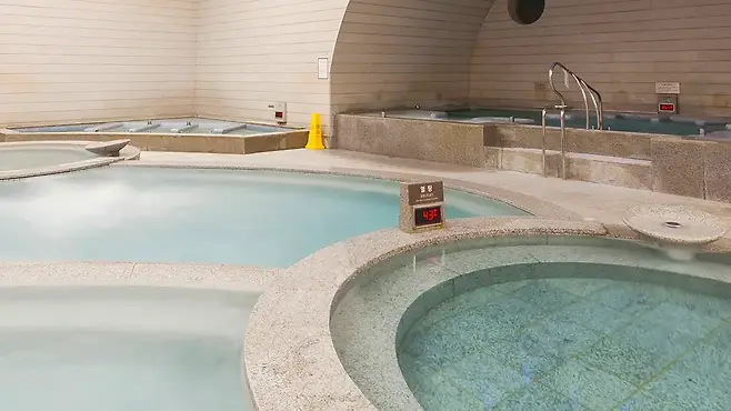 센텀시티 스파랜드의 가장 큰 특징은 지하 약 1,000m에서 끌어올린 천연 온천수입니다. 이곳에서는 염화나트륨 성분 온천수와 염화칼슘 성분 온천수 두 종류의 온천수를 사용합니다. 그래서 입욕 목적이나 컨디션에 따라 온천을 선택할 수 있도록 구성되어 있습니다.
