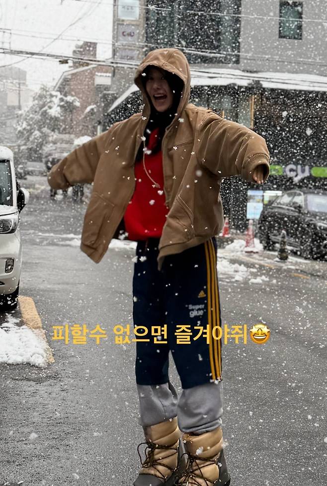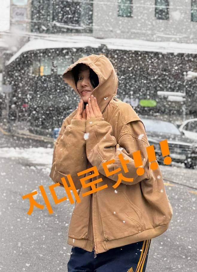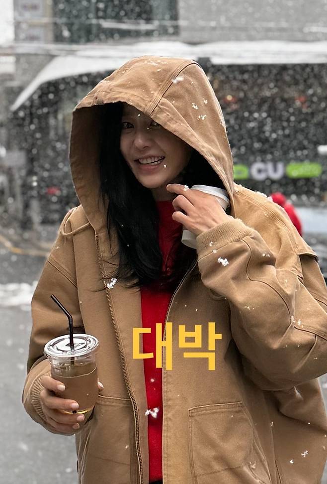 고현정은 27일 자신의 채널에 “눈이다 첫눈, 피할수 없으면 즐겨야쥐, 지대로다, 대박”이라는 글과 함께 첫 눈을 맞는 모습을 노출했다.