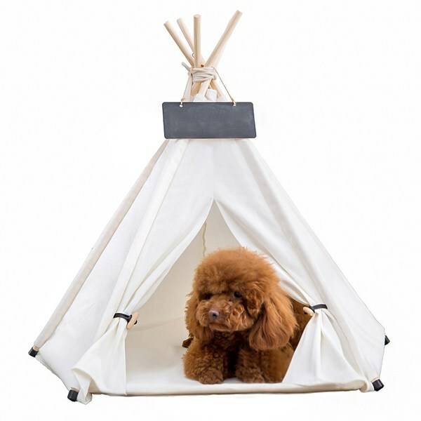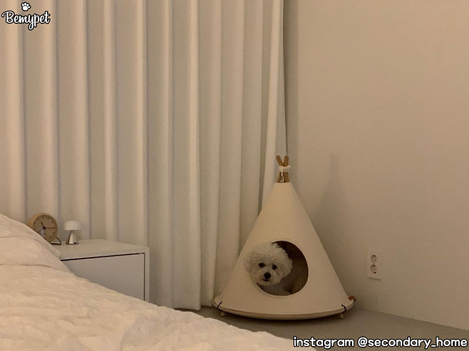 직접 조립해 사용하는 인디언 텐트 스타일 강아지 하우스입니다. 원목 소재의 지지대와 캔버스 천으로 만든 텐트로 튼튼해요. 사이즈가 소, 중, 대 세 가지로 비교적 다양해요. 다만, 방석 미포함 상품으로 방석은 따로 구매해야 합니다.
