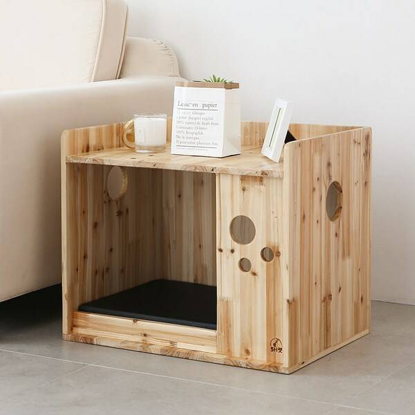 수오 큐브 소나무 원목 슬라이드 협탁 강아지 집 [SHT_120]