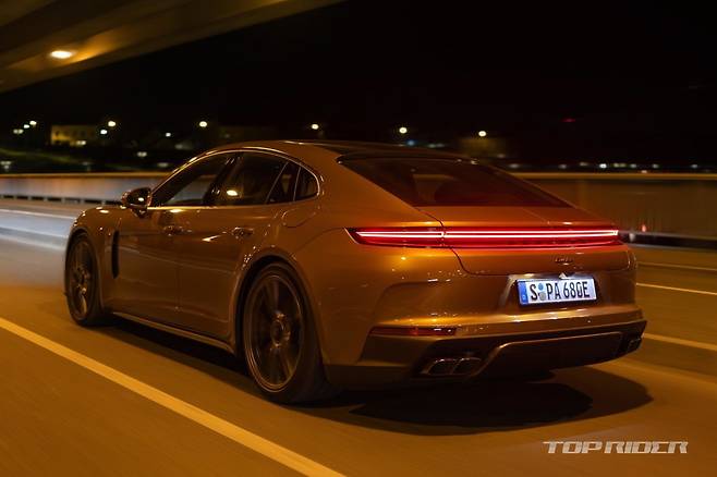 신형 파나메라 터보 E-하이브리드는 플러그인 하이브리드(PHEV)다. 4.0리터 V8 터보 엔진과 신형 전기모터, 25.9kWh 배터리가 조합돼 합산 총 출력 680마력, 최대토크 94.9kgm를 발휘한다. 정지상태에서 100km/h 가속까지 단 3.2초가 소요된다. 최고속도는 315km/h다.