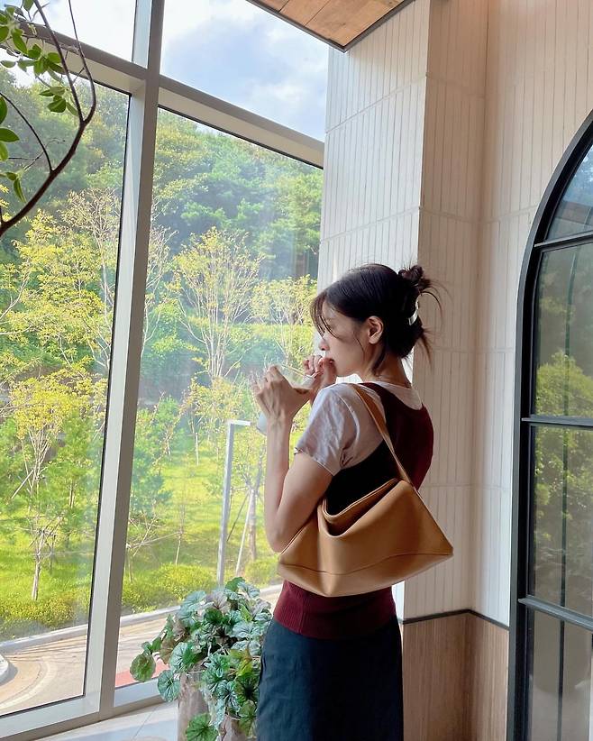 사진 속 정소민은 티셔츠에 버건디 니트조끼를 레이어드한 패션을 보여줬습니다. 또한 미니스커트와 로퍼를 매치해 캐주얼하면서도 러블리한 패션을 선보였습니다.