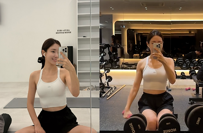 사진 속 그녀는 크롭톱과 운동팬츠 차림으로 11자 복근과 선명한 팔근육을 드러냈다.