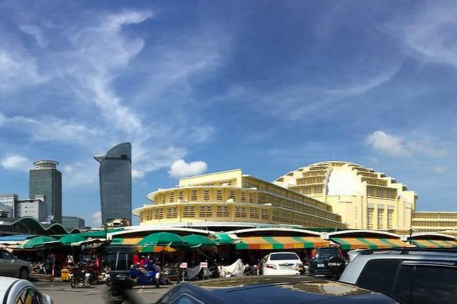 캄보디아의 수도 프놈펜에 위치한 중앙시장은, 1937년에 아르데코 양식으로 건축된 실내 전통시장으로, 다양한 상품들이 판매되고 있어 관광객들의 여행코스에 항상 들어와 있는 인기 명소 중 한 곳인데요.