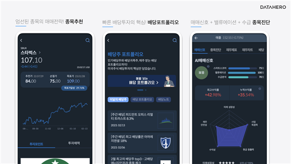 국내 주요 증권사에 미국주식 분석 서비스를 제공하는 데이터히어로가 만든 인베스팅 플러스는 미국주식 빅데이터 분석 기술과 인공지능 알고리즘을 적용해 개발한 미국주식 매매타이밍 서비스다.